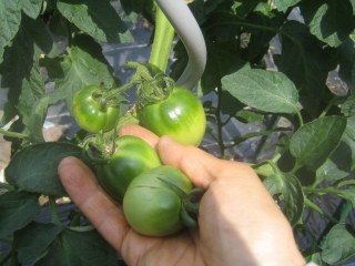 畑のトマトが大きくなってきました。 ちょっと遅くなってしまいましたが、第1果房の摘果と追肥をしました。 沢山、実がついているので、 2~3つほどに摘果 実がピンポン玉大で追肥なのですが、ちょっ…