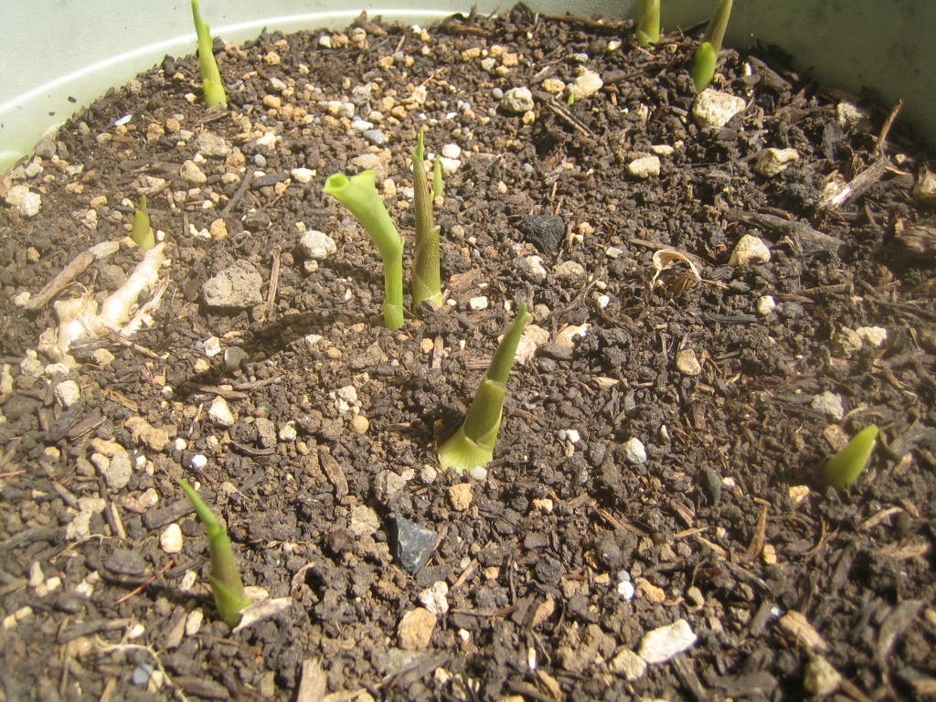 最初にプランターにミョウガを植えてから10年ほどが経ちました。このプランターに植えかえてから6年たち、今年も芽が出始めてきました。冬に植え替えないとな~と思いつつ、今回も植え替え出来ずそのままになってしまい、ちょっと株がこみあっている感じもします・・・。