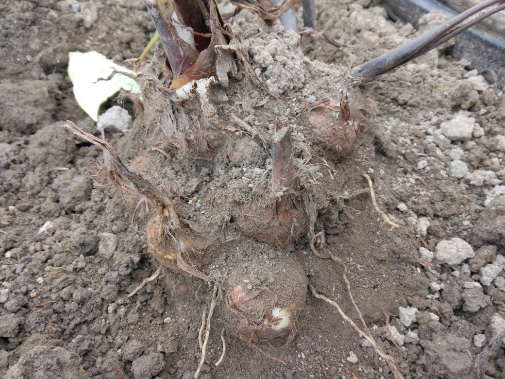 余ったポット苗を社内の花壇の端に植えてあったものも掘り上げてみたのですが・・・