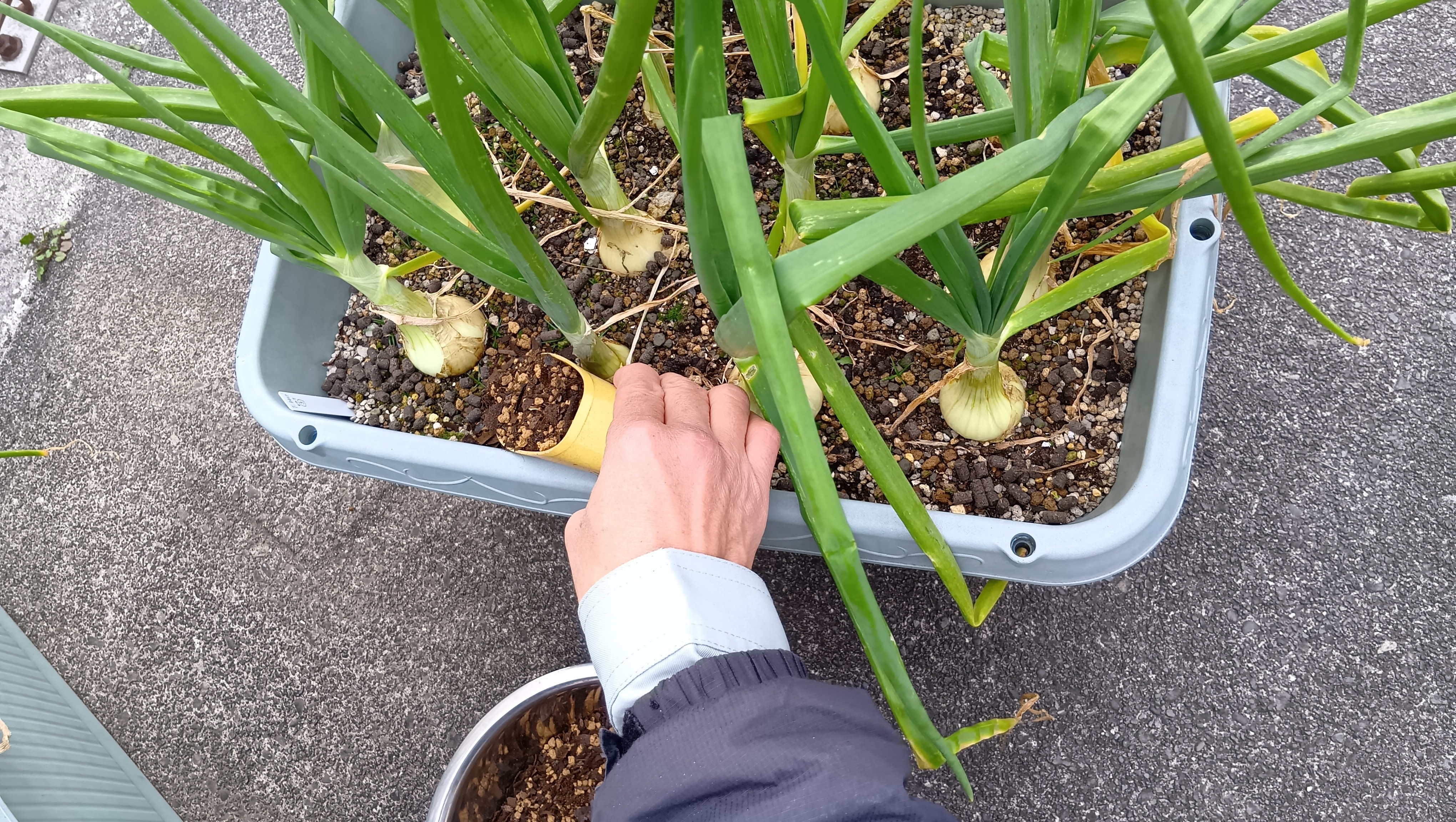 2026.01.07 プランター野菜 超極早生たまねぎに追肥2回目 1/7 1月に入りました。今年初めの作業は超極早生たまねぎの追肥です。 2月にしようかと思いましたが、プランター栽培ということもあり、少し肥料が切れ気味のせいか葉色がうすいので追肥をすることにしました。 前回の追肥の時には少し土を掘ったのですが、根がはっていたので増し土をしました。 この記事を共有する ツイート シェア 前の記事 ブログ一覧へ戻る