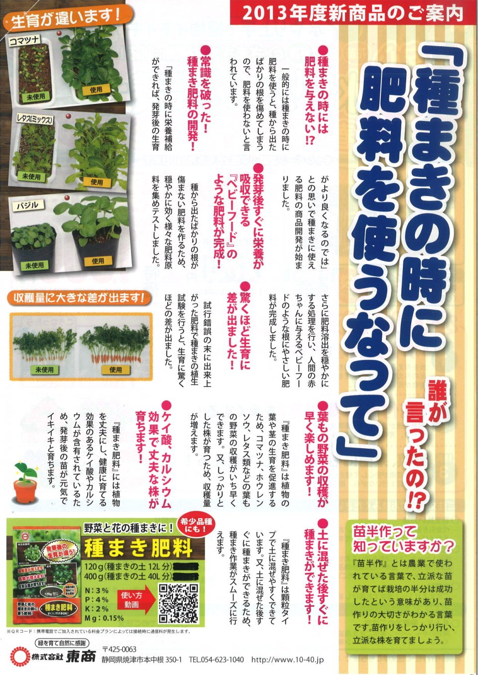 特長| 〇 | 使用後すぐに種まきできる穏やかに効く肥料です | | 〇 | 丈夫な株を育てるケイ酸が配合されています | | 〇 | 発根後すぐに栄養吸収できるので栽培期間の短い葉菜類などの野菜に特におすすめです | | 〇 | 栄養吸収を高める特殊天然素材配合で収穫量や花付きが良くなります |
